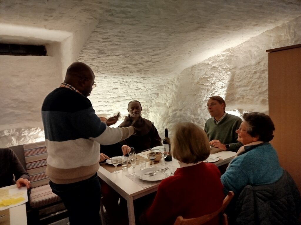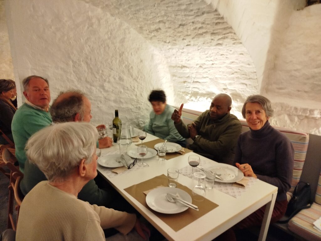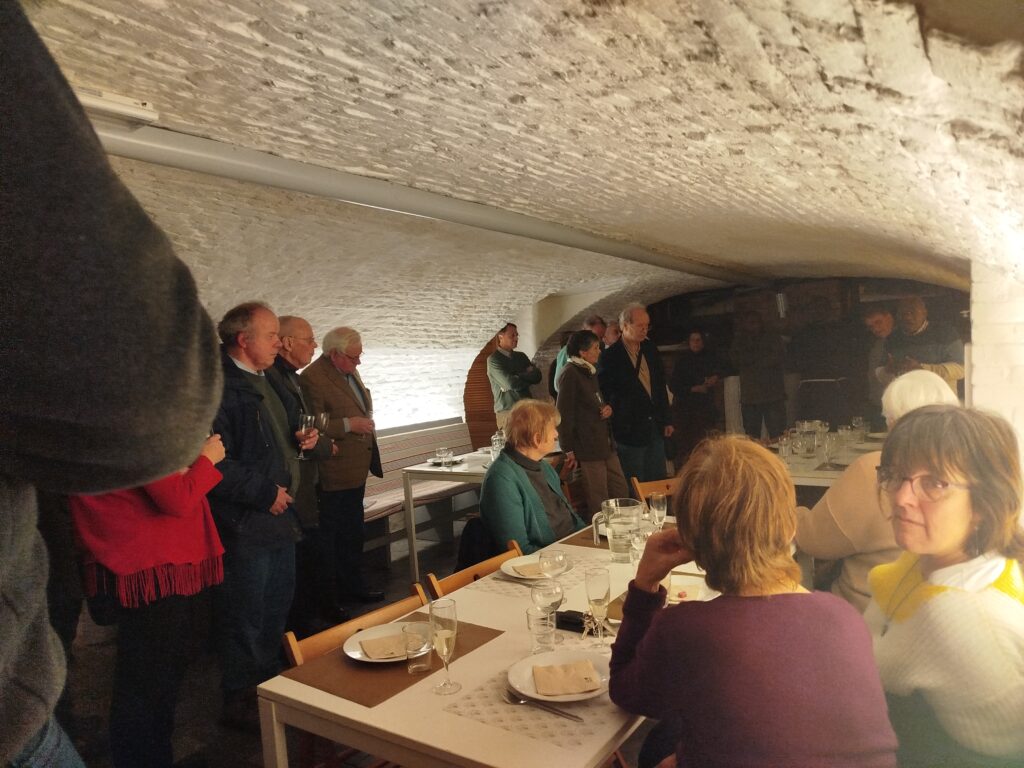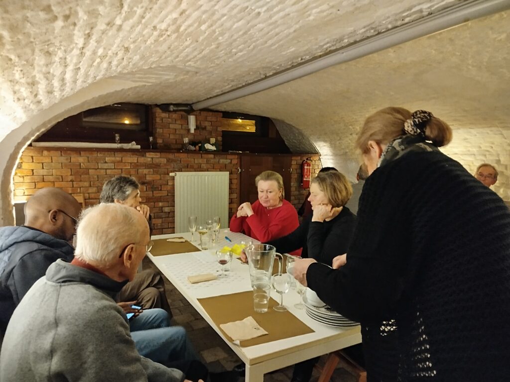 A 18h30 la Salle du Parvis de Grez centre commence à se remplir …. Accueillis avec un apéritif, la joie et bonne humeur se propage. Après les vœux de Jean-Pierre, responsable de l’unité Pastorale de Grez-Nethen, nous nous retrouvons en tablées de 6-7 personnes autour d’un bon repas et de deux questions concernant l’avenir de notre Unité pastorale: